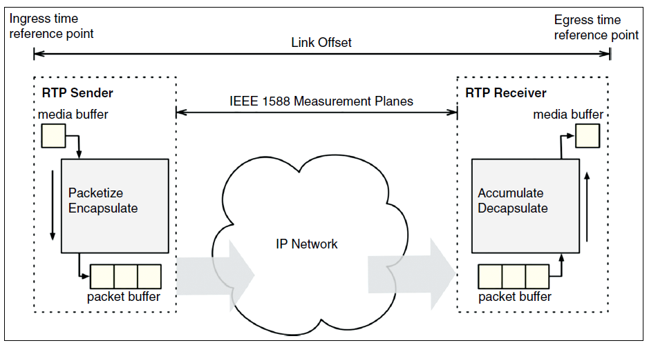 Используя метку RTP в AES67, приёмник может воспроизводить аудио с фиксированной задержкой относительно момента его создания. Точно так же, благодаря TR-04, приёмник работает с видеопотоком. Установив одинаковое значение задержки для обоих типов данных (при условии, что изначально они были синхронны), приёмник выдаёт идеально выровненный сигнал.